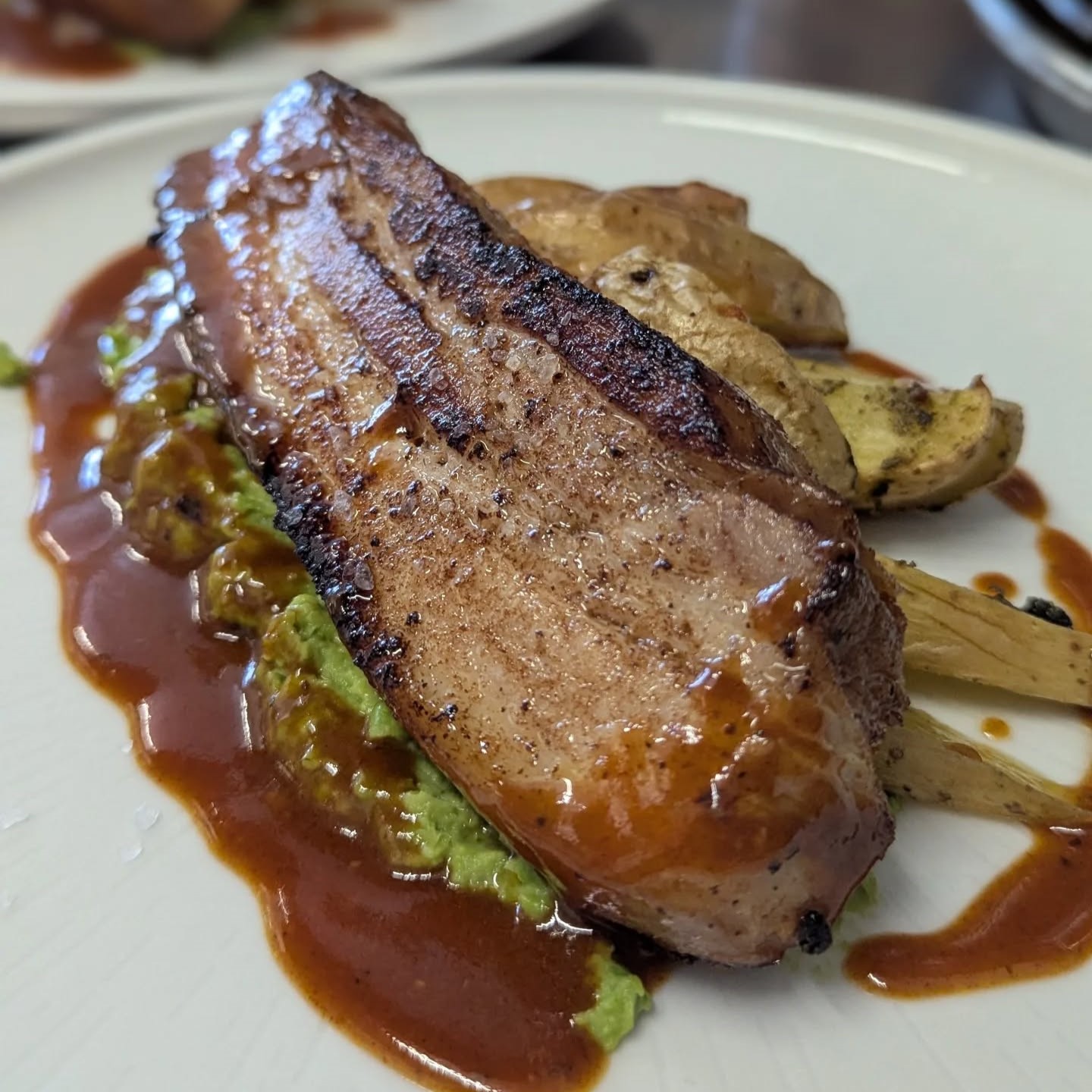 Grenadin de porc sauce à la moutarde, polenta et légumes