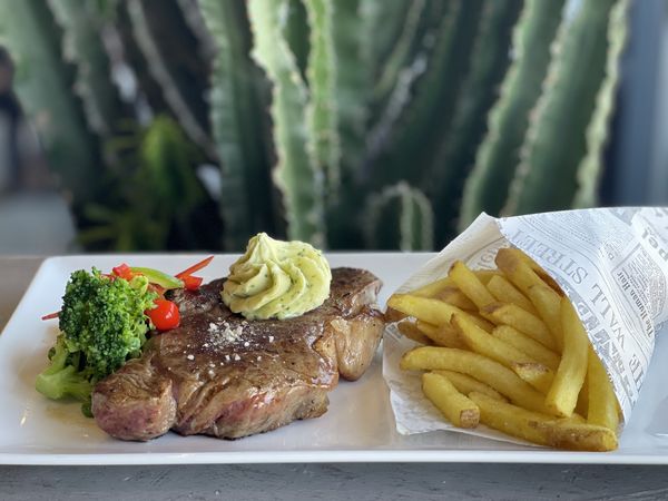 Faux filet black angus, beurre café de paris, légumes verts, frites
