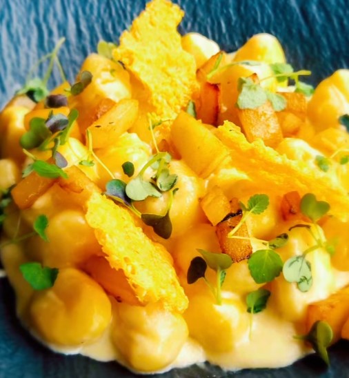 Gnocchi au gorgonzola, poire caramélisée, déglaçée au vinaigre de pommes