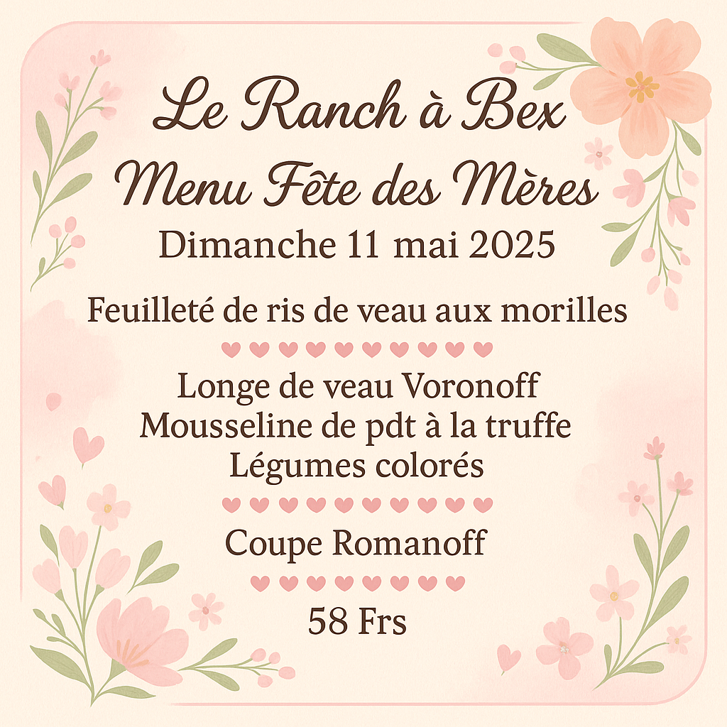 Cuisine familiale, le restaurant le Ranch à Bex propose des menus du jour y compris le week-end. Fermé le mardi.