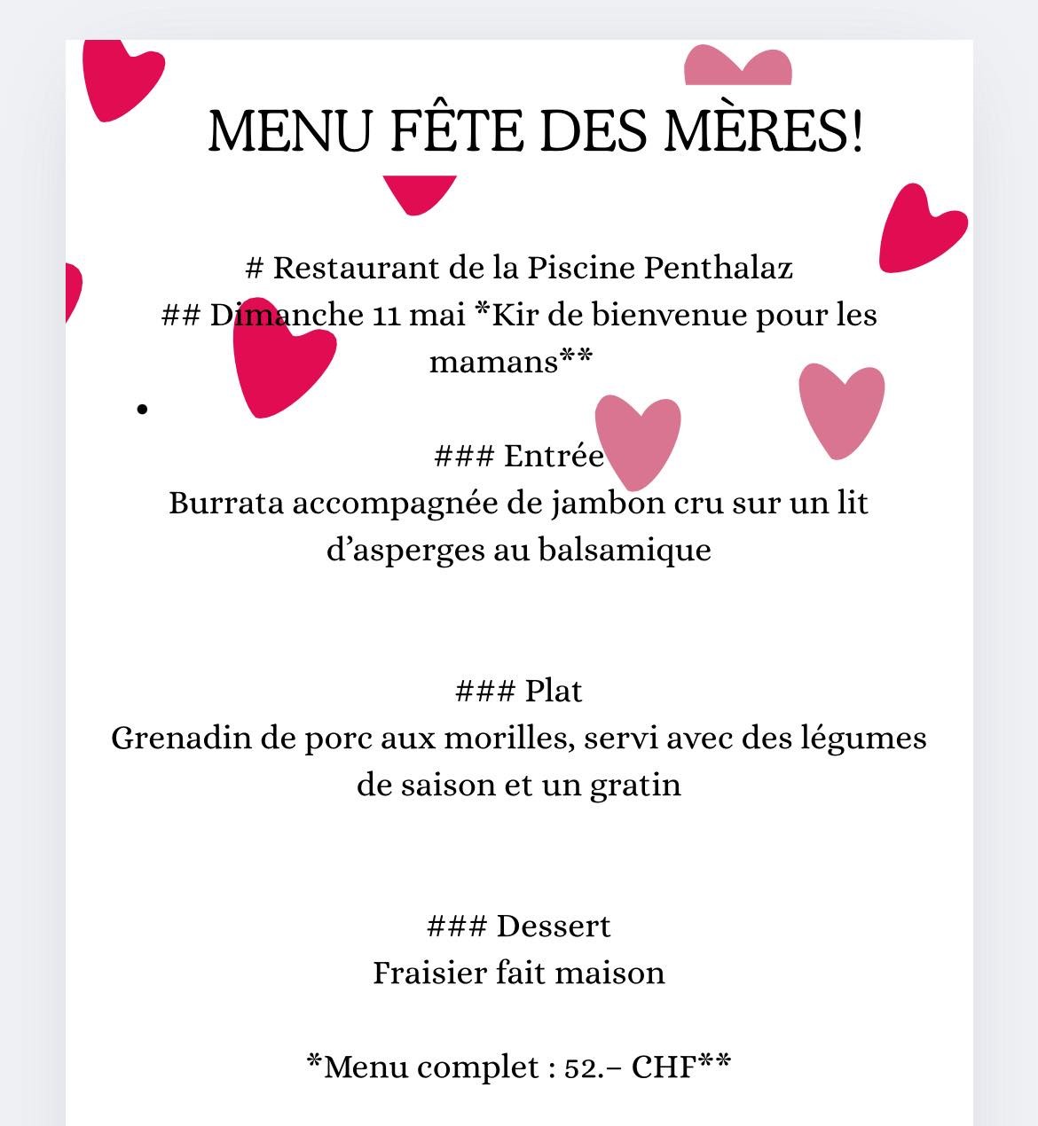 Le restaurant de la Piscine de Penthalaz ouvert jusqu'au 22 septembre 2025, propose un menu du jour ou un plat à la carte du restaurant.