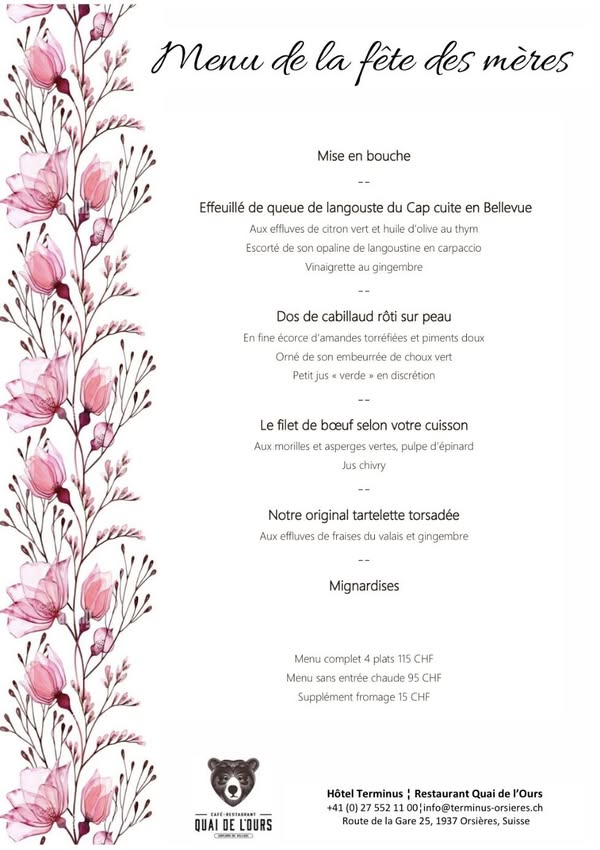 Le restaurant Quai de l'Ours de l'hôtel Terminus à Orsières propose en semaine un menu du jour ou un plat à la carte du restaurant.