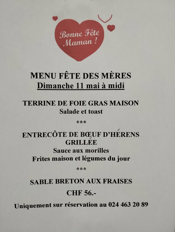 Carte des menus Restaurant Café des Alpes Bex